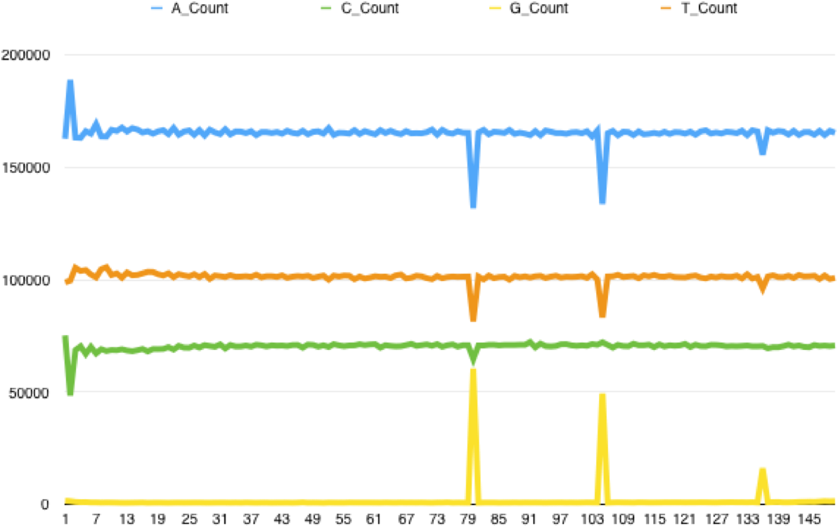 Recently I’ve had a great deal of difficulty with some BS-seq data, which had some bad reads where the quality dropped off randomly in the middle of the sequence – this is unusual as quality issues are typically at the ends of reads. You can see this illustrated below. The poor quality reads seem to cluster within certain tiles on the flowcell.